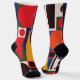 The design is a bold, modern abstract composition that feels like wearable pop art. It’s energetic, graphic, and unapologetically colorful — the kind of pattern that turns a simple pair of socks into a statement piece.
