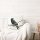 An accent pillow with a crow sitting on a branch with the words "Crazy Crow Lady" beneath.