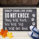 Introducing the perfect door mat for all dog lovers out there! This modern and stylish mat is the ideal way to welcome guests into your home with a touch of humor and cuteness. The faux slate material is both durable and environmentally friendly, while the paw prints and the playful phrase "Crazy Dogs Live Here...DO NOT KNOCK...They will bark, we will yell, it will get real" will bring a smile to anyone's face.