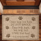 Welcome (or warn) guests with this playful doormat that reads, "Crazy Dogs Live Here. Do Not Knock. They Will Bark, We Will Yell, It Will Get Real." Featuring paw print accents and a customizable family name, this mat is perfect for pet-loving households. Ideal for new homeowners, dog owners, or as a humorous housewarming gift.