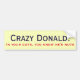 "Crazy Donald: In your guts you know he's nuts" Bumper Sticker