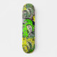 Own the street with the latest epic skateboards by Starhead Designs! This board is at home doing grinds on the half-pipe or kickflips in the street. This 'Mad Dragon' skateboard is great in indoor skate clubs, or out in the open by the ramps and curbs of city life. Stand out and be seen with this desirable, funky deck displaying colorful, striking, multi layered, torn and pasted looking multi-colored, fun, original and very cool Dragon themed design, this one with a frantic, mad grin with razor sharp teeth and spinning blade like eyes, based on urban street skate culture and graffiti art, all in varied shades of greens and yellows with hints and swirls of purple, brown and gray with an edgy, arty mishmash finish. Show off your best tricks with this distinctive, collectible, top of the range, high performance skateboard with the brightest colors, sharpest images and with professional quality standards that will stand up to the toughest skating, using the best quality hard-rock maple. Release the dragon within!