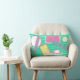 Crazy Geometry Turquoise Pink White Yellow Cushion / Throw Pillow to add to your home / office / business decor collection. A cool gift / present idea for all who love custom design personalized items, positive vibes, cheerful colors, different shapes and forms, circles and blocks, lines, stripes etc. Each side is different. Change the background color to suit your style and needs.