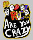 Featuring the bold statement "Are You Crazy?" in large white letters outlined in cheerful yellow, this illustration is surrounded by a medley of quirky doodles and expressive cartoon faces.