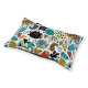 Vivid colors, and soft, plush fabric! I was extremely happy with this purchase. The print I chose worked on the large dog bed beautifully, and is a perfect match for our home tiki bar. Our dogs look so stylish lounging in here with us, and they love the soft fabric. My only minor critique would be that the stuffing inside is a little on the thin side, and becomes flat very easily. It's an extremely easy fix to add more stuffing, or do what we did and add a stuffed rectangle crate liner inside the cover underneath the existing stuffing - works perfectly! The printing turned out better than I could've imagined. I was extremely impressed with how well the colors turned out and how the design looked.