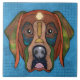 Unique crazy dog Labrador Retriever face with bold, colorful abstract patterns on a blue background. Popular with dog lovers and pet lovers and rescue dog lovers.