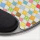 The plastic backing is nice and sturdy. The grippy pads underneath keep the mouse pad where I put it on my table. The pad the mouse sits on is cut well to fit the backing. The wrist pad is perfectly soft, supportive, and thick. I'm left-handed, and this mouse pad works just as well for me as it does for my right-handed friends. I'm the designer of HippieClecticHope products. I'm blown away by how well my intricate fractals turn out on the tangible items in the Zazzle Marketplace. This particular mouse pad ***appears*** like a 3D object... A mathematically-engineered rainbow black opal, inlaid under transparent fabric...