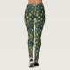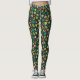 Cute St. Patrick's Day leggings in festive green, orange, yellow and off-black feature a fun, crazy pattern of four leaf clover shamrocks, lucky horseshoes, leprechaun hats, green beer and orange Irish kisses. A perfect compliment to your green beer at St Paddy's Day parades and parties!