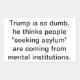 Trump is so dumb, he thinks people "seeking asylum" are coming from mental institutions. Comic Conscious-Social-Commentary Splash-art sticker-design by Jeff Hankamer at Artjunkhaus