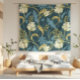 A bold, maximalist cream and blue floral vintage inspired Art Nouveau pattern on a dark blue background