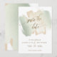 Elegant Wedding Save the Date card with beautiful sage green brush strokes in a harmonious blend of cream beige, peach, and sage green hues with "Save the Date" phrase in graceful modern hand written calligraphy. Attractive back with brush strokes wash. Modern, elegant minimalist style. Note: typography is not in real foil, but rather print in a golden hue. Part of our "Sage Green Brush Strokes Wedding" collection.