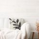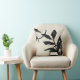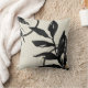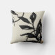 Modern throw pillow features an artistic design in a cream and black color palette with gold accents. A stylish modern design features watercolor leaves and a geometric circle composition with an inquisitive hummingbird in the upper left hand corner. This modern composition is built on combinations of repeated leaves and circles, which are overlapped and interlaced to form an intricate design. Inspired by Japanese design.