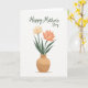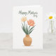 This greeting card features a simple floral illustration on a white background, centered on an earthy tan vase with rounded curves that feel gently comforting. Two stylized flowers rise from the vase like close companions, leaning slightly toward each other with a quiet, affectionate closeness ❤️. One bloom is a soft cream tone, while the other is a calm coral-peach that adds a friendly warmth to the pair. Deep green, slender leaves weave upward around the blossoms, giving the arrangement a natural, caring presence 🌼. A light shadow sits beneath the vase to suggest depth while keeping the scene airy and uncluttered. Near the top of the card, a flowing handwritten-style line of text appears in a forest green, set above the flowers and spaced to feel open and balanced. The vase sits centered with the bouquet rising above it, framed by plenty of white space and a faint gray shadow below.