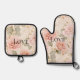 Cream Blush Pink Roses Floral Oven Mitt & Pot Holder Set