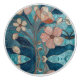 Cream Copper Blue Teal Floral Ceramic Knob
