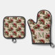 Cream Dragonflies and Roses Monogram Oven Mitt & Pot Holder Set