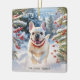 Cream French Bulldog in Snow Merry Christmas Ceramic Ornament