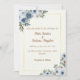 Cream, Gold Border & Blue Flowers Wedding Invitation