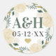 Cream Gold Floral Greenery Monogram Wedding Classic Round Sticker