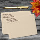 Our Light Tan, Creme colored envelope is designed to coordinated with our Happy Friendsgiving Woodland Animals Collection, This time saver is a great option for the generic white envelope that is an option with the standard invitation. No need to place a return address label, this envelope, with its editable text, has a pre stamped return address. Edit text from the product page or to change font style or color, use the design tool.