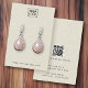 Earring product display card with QR code and custom logo template on a cream colored PRINTED IMAGE of linen.