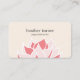 Elegant business cards for yoga studio, massage studios, massage therapy, meditation teacher, natural health counselor, spas or wellness professionals feature graceful flower illustration in cream, coral, light pink palette on a coordinate pink background.
