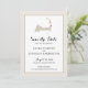Wedding Announcement for your Cape Cod wedding. Tan Map of Cape Cod with a red heart over Orleans, Massachusetts. COLORS in Light Cream background with Tan trim. For inquiries about custom design changes by the independent designer please email paula@labellarue.com BEFORE you customize or place an order.