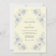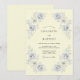 This design showcases a warm cream background accented by soft watercolor roses in shades of periwinkle and dusty blue. The artistic botanical elements are arranged with a sense of classical balance and timeless elegance. Muted tones and delicate foliage create a romantic atmosphere perfect for a spring or summer event.