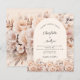 A modern, stylish and romantic invitation for a wedding. Cream, peach colored background, arch frame, decorated with cream colored flowers. Personalize and add your names and the details.