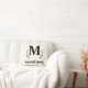 Cream Pillow with Big Family Initial, Name, and Holiday with gray silver Wreath. Elegant Thanksgiving Decoration.