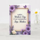 This card centers on a gold-framed panel set on a warm cream background, with a dedication message in dark lettering placed neatly in the middle. Soft pastel accents and organic shapes around the frame create a gentle, affectionate mood, like a quiet note shared between close hearts ❤️. Clusters of lavender and deep purple blossoms drape around the frame to form a natural border, with daisy-like flowers showing layered petals and darker textured centers. Fine green leaves thread between the blooms, adding fresh contrast and guiding the eye back toward the central text. A cream rose with unfurling petals rests at the lower left, suggesting a tender offering left just for someone special. Two patterned butterflies in purple and black hover at the upper right, adding a light, romantic pause above the flowers 🌼. Diffused lighting creates soft shadows on the petals and a subtle sheen along the gold frame. The message sits centered within the frame in dark lettering on cream, while the upper-right butterflies angle inward over the purple blossoms.