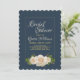 A bridal shower invitation that's elegant and chic in navy blue with a thin, gold frame and a cluster of cream roses. (<a href='https://www.freepik.com/free-vector/wedding-card-with-white-roses_1261901.htm'>Designed by Freepik</a>). <br/><br/>The card is easy to customize with your wording, font, font color, paper shape options and choice of six paper types.<br/><br/>Not exactly what you're looking for? All our products can be custom designed to meet your needs at no extra charge.<br/><br/>Simply contact us at heartfelthelper@gmail.com.<br/><br/>Coordinating products available: Just ask us!