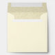 Elegant custom square wedding envelope done in cream, with graphics of a cream and khaki swirl pattern, on the inside. Dark gray return address text, on the back flap, is ready to personalize with your own information. Lovely finishing touch to our Cream fabric looking wedding invitation.