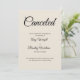 Here's a simple card to notify your guests if it's become necessary to announce that your wedding has been called off. Use the template fields to add your personal details and make this elegant, minimalist design your own. The cream background can be changed to any color you prefer. All fonts and colors are also editable. Please reach out with any special requests or for customizing assistance. Other pieces with alternate wording are available in the collection.