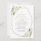 Invite friends and family in style and set the tone for your special day with this elegant first holy communion invitation. Design features white watercolor flowers, greenery and gold frame on white background.