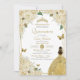 Cream White Gold Floral Butterfly Rose Quinceanera Invitation