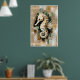 A Cream & White Seahorse Drifts on an Abstract Background. Brown Vintage Book Pages Surround the Seahorse with an Abstract Earthen Tone Color Palette. Ocean Academia Inspires this Digital Print.