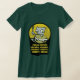 My overall review is that the T-shirt is nice, it fits true to size however the font is significantly smaller than advertised and you can't read it. The printing is unreadable and there is a strain to read it. It does not look like the advertised product. Maybe the shirt color is darker or a larger more visible font should have been used. Photos with and without flash and font is barely legible.