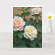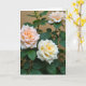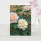 Designed with a close-up view of three fully opened garden blooms, the artwork feels intimate, like a quiet moment shared between close friends. Two blossoms sit in the foreground: one in soft peach fading to creamy white with tightly layered petals curling toward a warm apricot center, and one in creamy white opening to a gentle golden heart ❤️. A third bloom appears softly out of focus in the upper right, adding depth like a distant companion in the background. Dark green leaves with serrated edges weave around the flowers, their rich tones framing the pastel petals and drawing your eye inward. Light falls softly across the scene, catching velvety curves and subtle color shifts from warm centers to cooler, pale edges. In the upper left, a few unopened buds lean together as if sharing a quiet secret, adding a tender, romantic note 🌼. The greeting text sits near the top in a light, airy color, with a smaller line placed near the bottom in a matching tone, floating over the muted background.