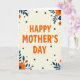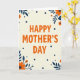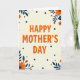 Designed with a celebratory, affectionate look, this card centers on the large phrase “HAPPY MOTHER’S DAY” stacked down the middle in pumpkin-orange letters. The message runs along the vertical axis and stands out against a softly aged, cream-toned background, giving the layout a cozy, cared-for feel ❤️. In each corner, simple botanical shapes frame the scene, with deep navy leaves and stems curling inward as if reaching toward the words. Petite five-petaled orange blossoms with darker centers sit among the foliage, adding small touches that feel like quiet little kisses of color. The limited palette—orange, navy, and cream—keeps everything calm and close, like a warm hug shared between loved ones. The text stays centered while the floral corners balance the space, and the cream field leaves plenty of breathing room around the greeting. Across that open background, tiny solid navy dots are scattered like gentle confetti, with a few sitting near the flowers 🌼.
