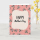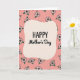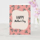This card features a soft, rounded cream-colored shape in the center that draws your eye straight to the message “HAPPY Mother’s Day.” The word “HAPPY” sits at the top in dark lettering with a simple, sturdy look, while “Mother’s Day” appears just below in a flowing, cursive-style line that feels tender and affectionate ❤️. Around the center, a repeating garden of small flowers creates a sweet, friendly atmosphere, like a warm hug shared between close family. Each flower is outlined in black with blush-pink petals, bright green leaves, and sunny yellow centers, giving the scene a gentle springtime mood 🌼. The background is a soft pastel pink, and the scattered blossoms make the space feel lively without looking crowded. The central cream shape acts like a calm pause amid the pattern, keeping the text easy to read and nicely framed. Black-outlined flowers with pink petals and yellow centers are spread evenly across the pastel pink background around the central cream vignette.