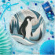 Surrender to the soothing swirls of this art piece, where a penguin gracefully adorns a dreamscape of fluid lines and gentle waves. The serene blue palette captures the essence of a tranquil sea, complemented by the soft cream and the bold contrast of the penguin’s silhouette. Nature’s elegance is rendered through stylized trees and whimsical foliage, creating a peaceful woodland scene within the undulating oceanic patterns. This artwork is a perfect harmony of marine and forest motifs, ideal for adding a calming yet captivating element to any space that celebrates the beauty of the natural world.