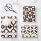This set of three wrapping paper sheets exudes a blend of sophistication and elegance, each adorned with intricate geometric patterns. The rich brown hue forms the backdrop, beautifully contrasted by the crisp white detailing, offering a classic yet contemporary aesthetic. The top sheet features an intricate pattern of interlocking shapes creating diamond-like structures. The design is complex and detailed, adding a touch of luxury to your gifts. The middle sheet takes complexity a notch higher with additional elements that create star-like figures within the geometric pattern. The bottom sheet offers a simpler, more spaced-out design with star-shaped outlines. It's a great choice for those who prefer a minimalist yet stylish look. Each sheet boasts a unique pattern, making this set versatile and suitable for various occasions.