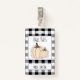A new student hall pass for this Autumn season with the illustration of two creamy orange white pumpkin and a white and black Gingham background . Choose your favorite attachment (lanyard or metal clip ).