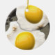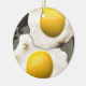 Lightweight, smooth, pure white ornament with nice sheen. Perfect size to be seen from across the room ... and to attract closer inspection! Price was great for ordering enough for the whole family! Clear, bold black design just as requested. Matches the order exactly. Just so nice!