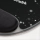 The plastic backing is nice and sturdy. The grippy pads underneath keep the mouse pad where I put it on my table. The pad the mouse sits on is cut well to fit the backing. The wrist pad is perfectly soft, supportive, and thick. I'm left-handed, and this mouse pad works just as well for me as it does for my right-handed friends. I'm the designer of HippieClecticHope products. I'm blown away by how well my intricate fractals turn out on the tangible items in the Zazzle Marketplace. This particular mouse pad ***appears*** like a 3D object... A mathematically-engineered rainbow black opal, inlaid under transparent fabric...