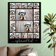 Use up to 18 square and 2 landscape/horizontal photos to create a unique and personal gift. For best results, crop your photos into squares before uploading. This trendy layout with a place for extra text or a monogram includes clean lines and a modern grid. If you need to adjust the pictures, click on the customize tool to make changes.