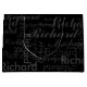 Front side: a pattern with your Name in different font styles on black (custom color) Back: full name with name-initials
