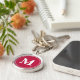 Create your own custom, personalized, modern, cool, chic, trendy, simple, minimalist, stylish, elegant white monogram on crimson red background, round silver colored metal keychain / keyring. Simply type in your initial / monogram, to customize. While you add / design, you'll be able to see a preview of your creation, throughout. Makes a great gift for birthday, graduation, fathers day, mothers day, christmas, holidays, wedding, marriage anniversary, valentines day, and more, for your loved ones, kids, mom, dad, wife, husband, girlfriend, boyfriend, grandparents, family and friends.