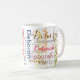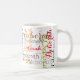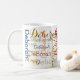 It is impossible for me to find a mug with my name on it, so I treated myself to a personalized one. It is very colorful with a variety of fonts, and it is dishwasher safe. I have enjoyed drinking my coffee out of my mug!! The printing was exactly as shown and as I expected.
